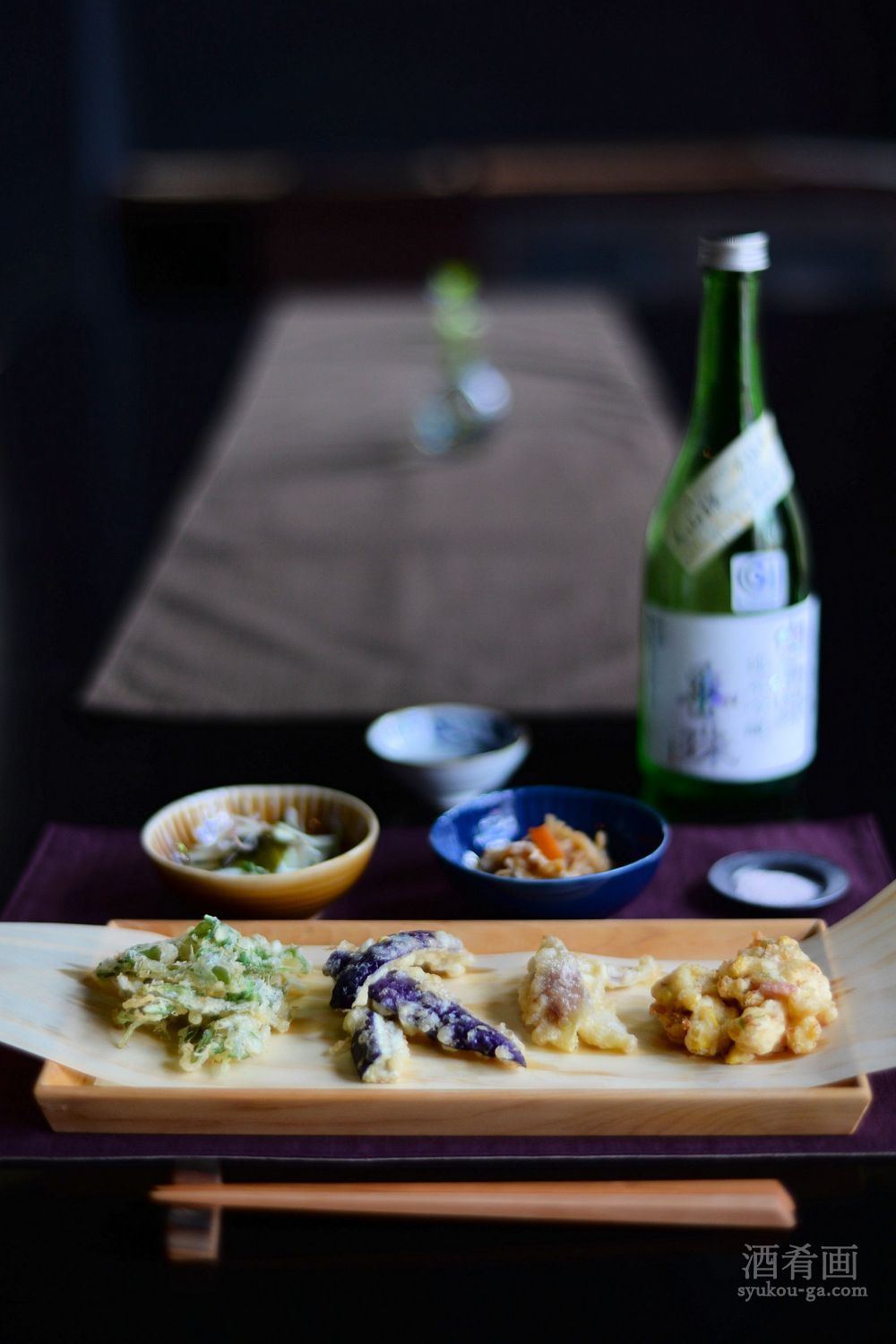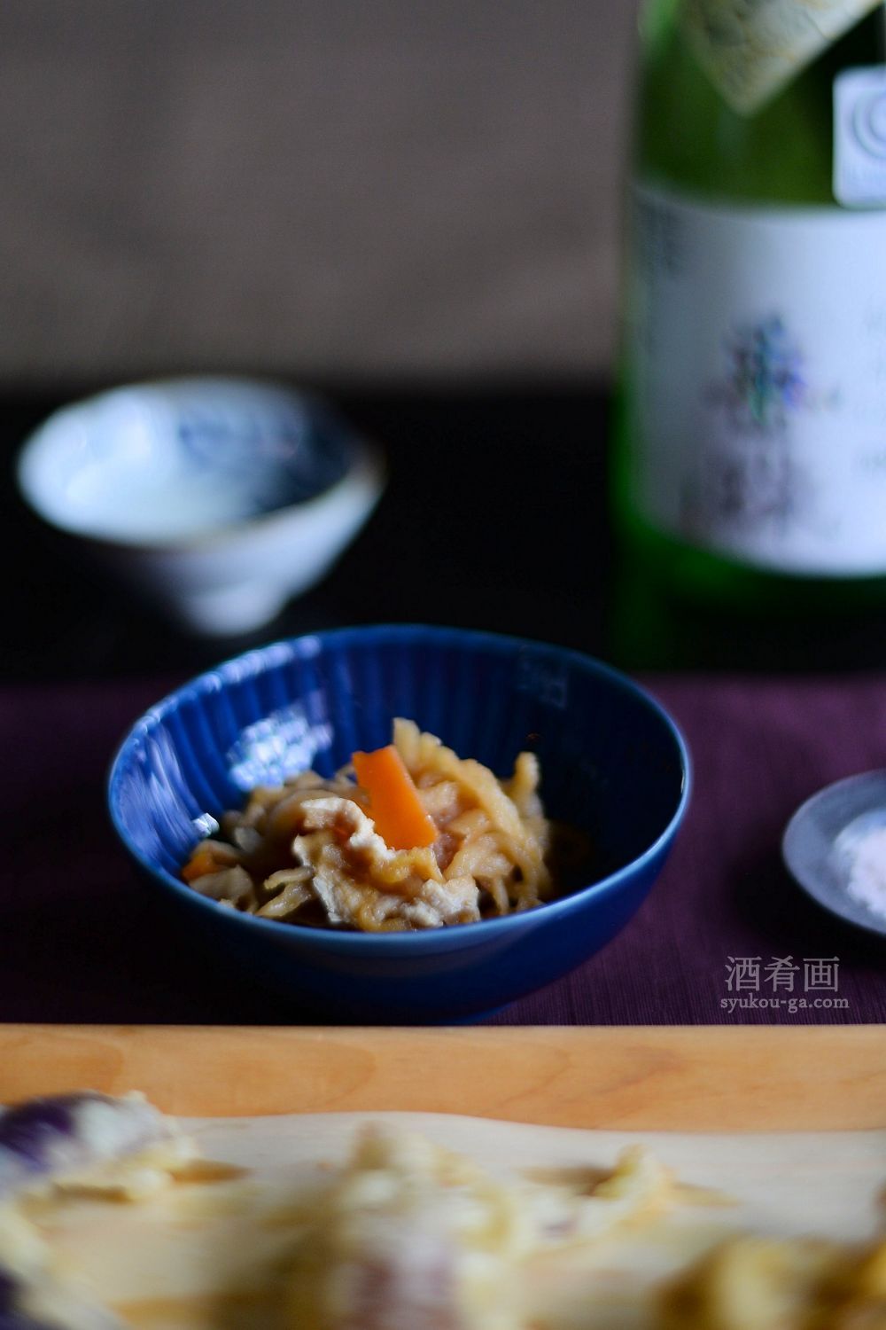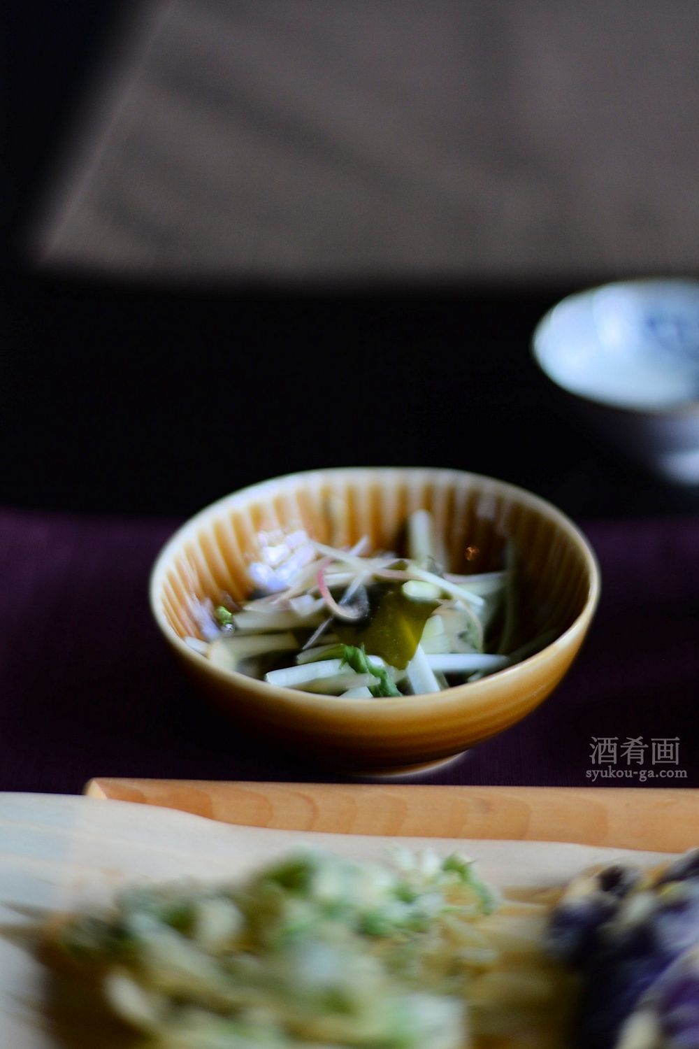 天ぷらとかき揚げ ワカメの甘酢和え 切り干し大根の煮物